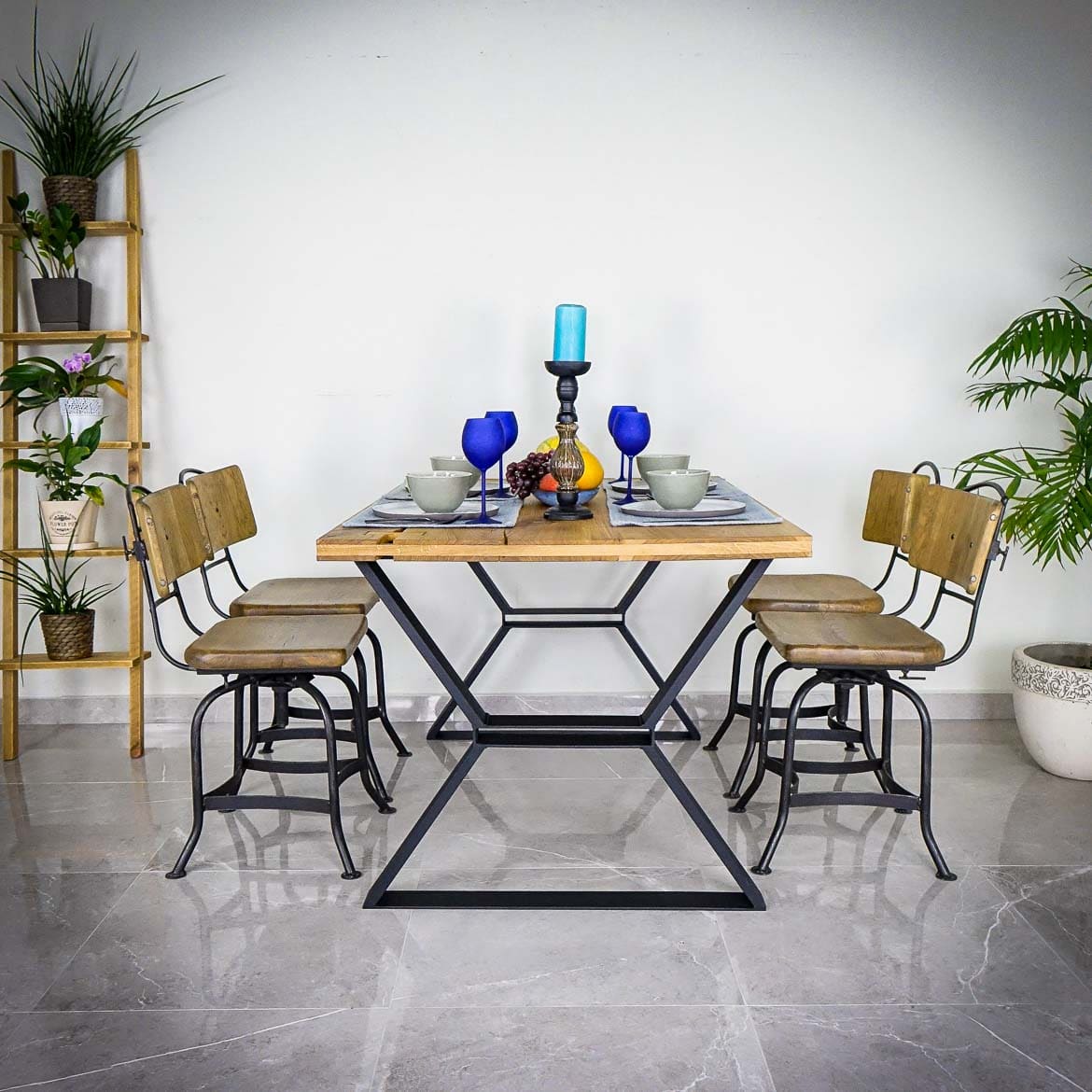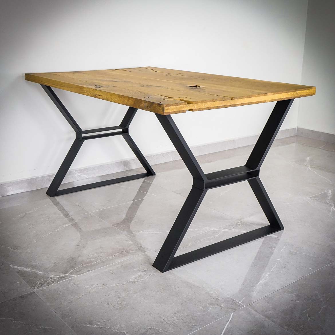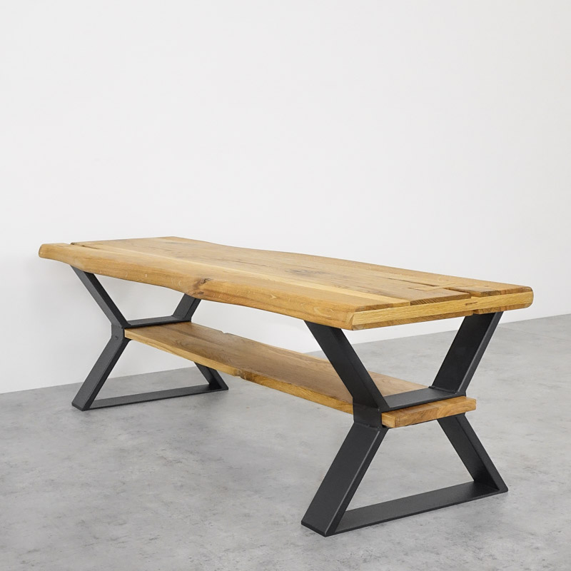 Dessa ben lever verkligen upp till sitt namn, Bordsben med Funktion. De påminner om modellen X, men med möjligheten att lägga en smalare skiva under bordsskivan. Måtten på detta utrymme är 34×3 cm. Skivan kan användas som ett praktiskt hyllplan eller varför inte som benstöd. Det klassiska lantbordet har fått en modern touch.