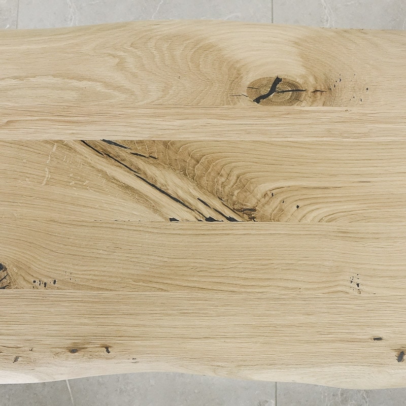 – Ojämnheter och sprickor är fyllda med en trämassa anpassad till ek.